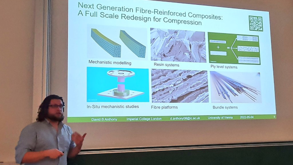 Professor Milo Shaffer and Dr David Anthony were delighted to be invited to speak the 7th International Polymer & Composites Engineering (PaCE) Group X-mas Symposium in Vienna which was on the 21th December 2022, and hosted by Professor Alexander Bismarck. It was a great day full of diverse and interesting talks, with Milo discussing “Nanocarbon reduction: Versatile chemistry, assembly and application” and David discussing “Improving fibre-reinforced composites in compression with hierarchical continuous 3D reinforcement”.